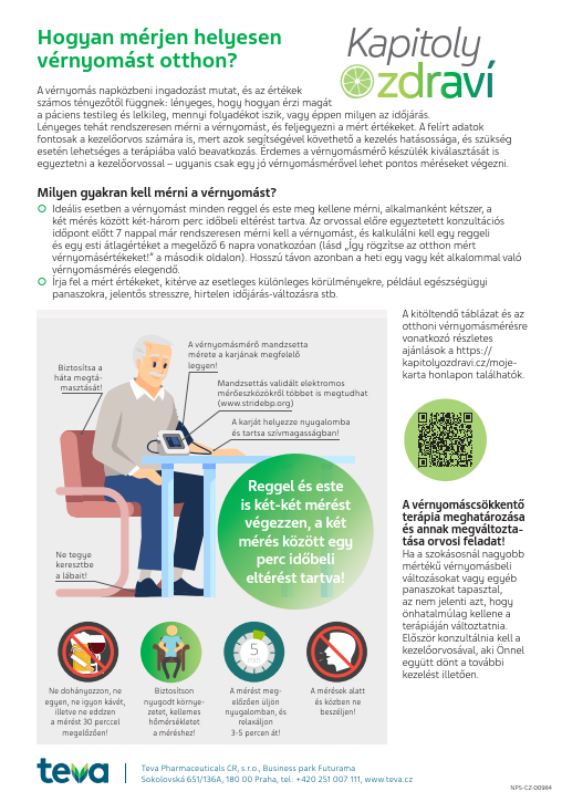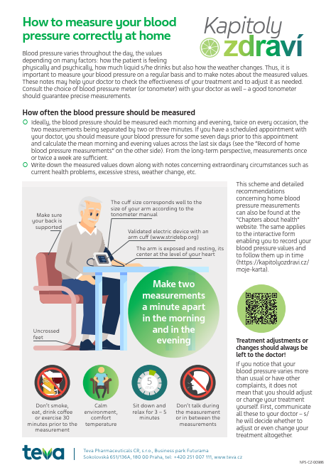 Leták Jak si doma správně měřit tlak včetně Záznamu o domácím měření tlaku v angličtině