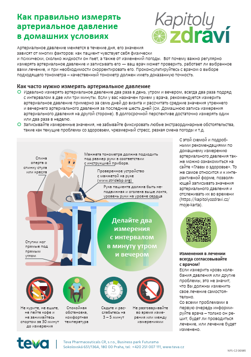 Leták Jak si doma správně měřit tlak včetně Záznamu o domácím měření tlaku v ruštině